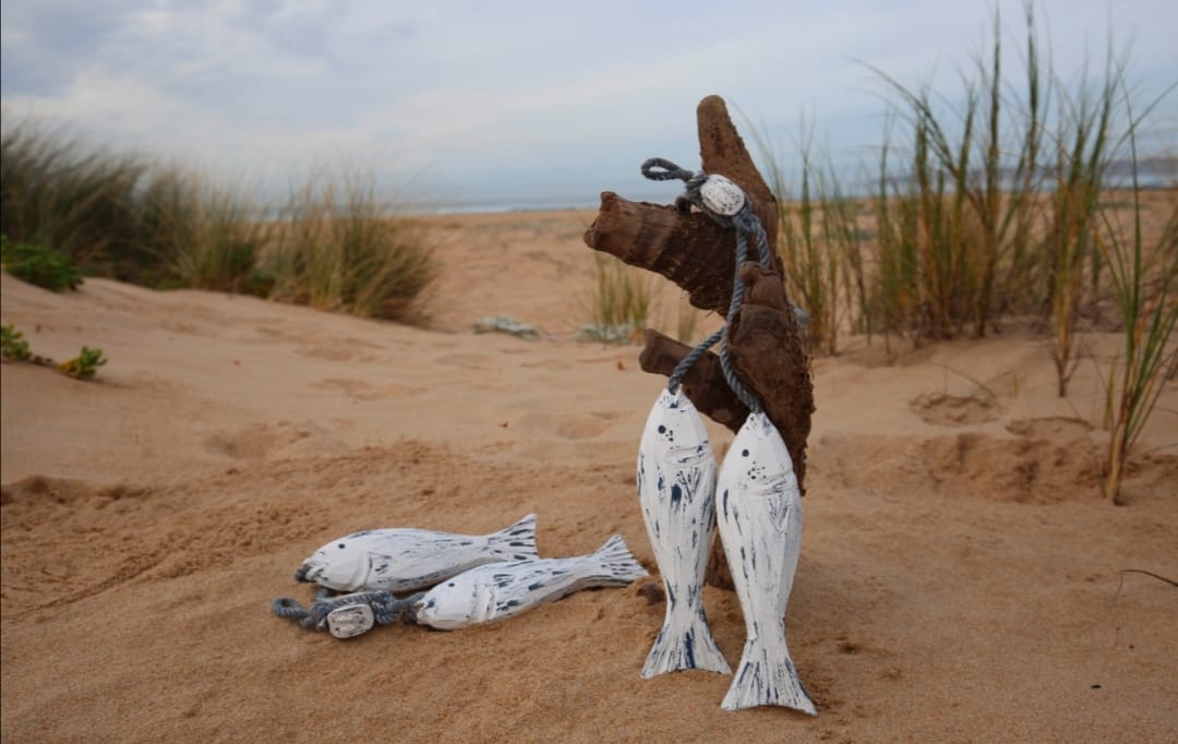 Curtain tie-back. Two fish on string. 120mm x 40mm x 25mm
